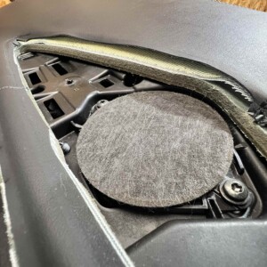モケット部と後面のキルトの大きさを変更し、サイドパネルもついでに生地を貼りました。